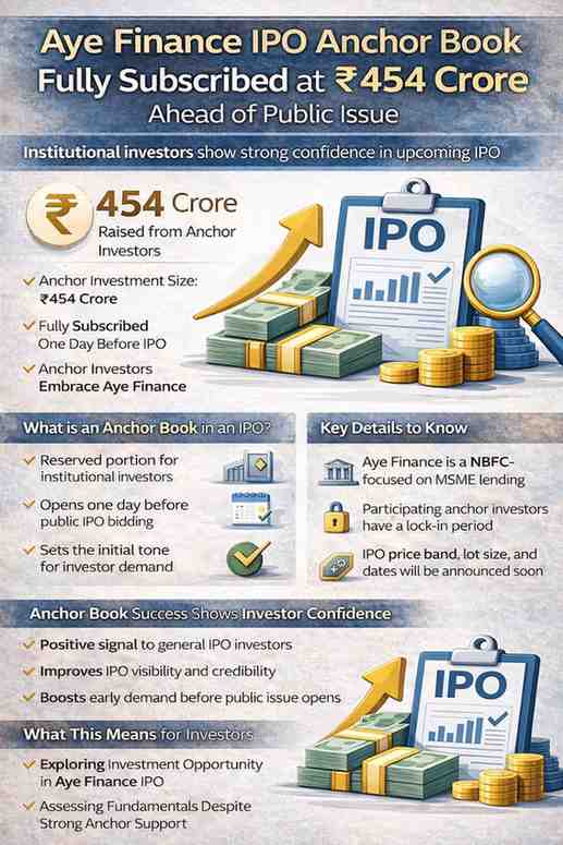 The Aye Finance IPO anchor book has been fully subscribed at ₹454 crore, indicating strong institutional demand ahead of the public issue.