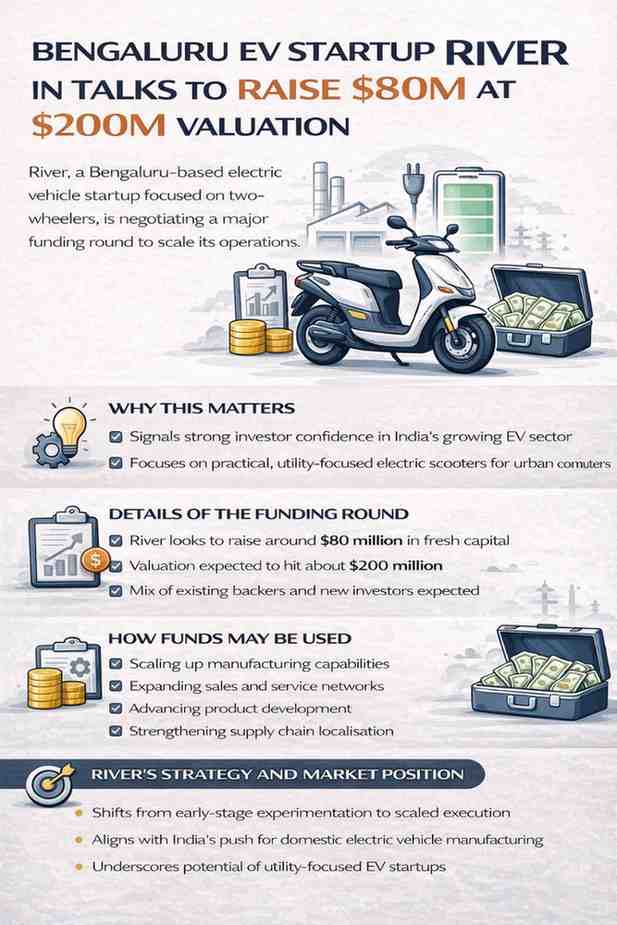 Bengaluru-based electric vehicle startup River is in talks to raise around $80 million at a valuation of nearly $200 million, marking a major moment for India’s fast-evolving EV ecosystem.