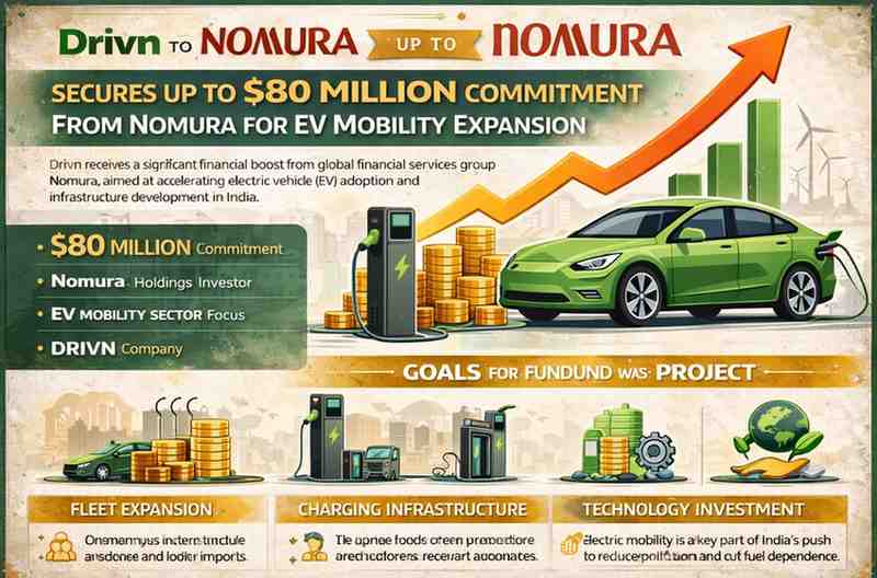 India’s electric vehicle ecosystem received a major boost as Drivn secured a commitment of up to $80 million from Nomura Holdings to support its EV mobility expansion.