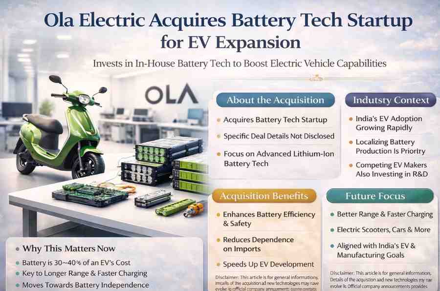 Ola Electric’s acquisition of a battery technology startup marks a decisive move towards deeper control over the most critical component of electric vehicles. As India’s EV market grows, such strategic investments could shape which companies lead the next phase of electric mobility.