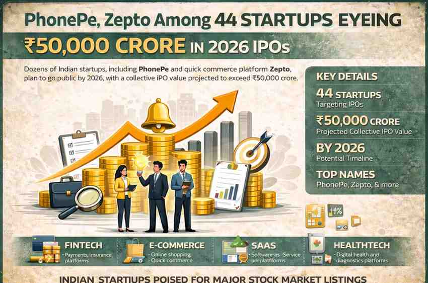 The possibility of 44 startups, including PhonePe and Zepto, eyeing ₹50,000 crore worth of IPOs in 2026 signals strong momentum in India’s startup ecosystem.