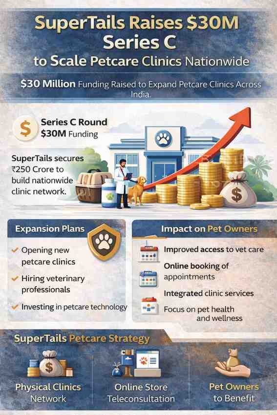 Indian petcare startup SuperTails has raised $30 million in Series C funding to scale its petcare clinics nationwide. The fresh capital will help the company expand its offline presence, strengthen veterinary services, and deepen its reach in India’s fast-growing petcare market.