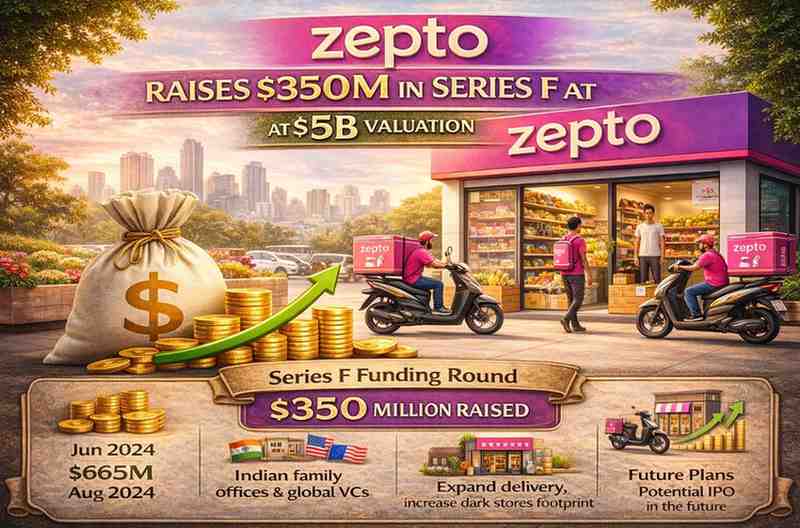 - In June 2024, Zepto raised $665 million in what was then termed a Series F round at a valuation of about $3.6 billion, led by institutional venture firms.